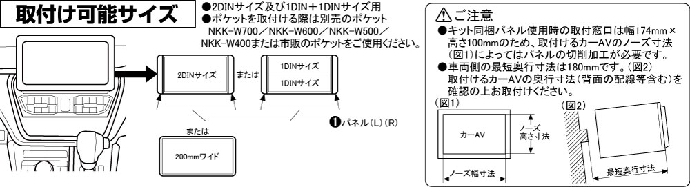 NKK-D82D 2025年10月6日 最終更新日時 : 2025年10月6日 okamuray 200mm窓口付車(オーディオレス車)に市販の200mmワイドまたは2DINもしくは1DIN+1DINを取付けるためのキットです。