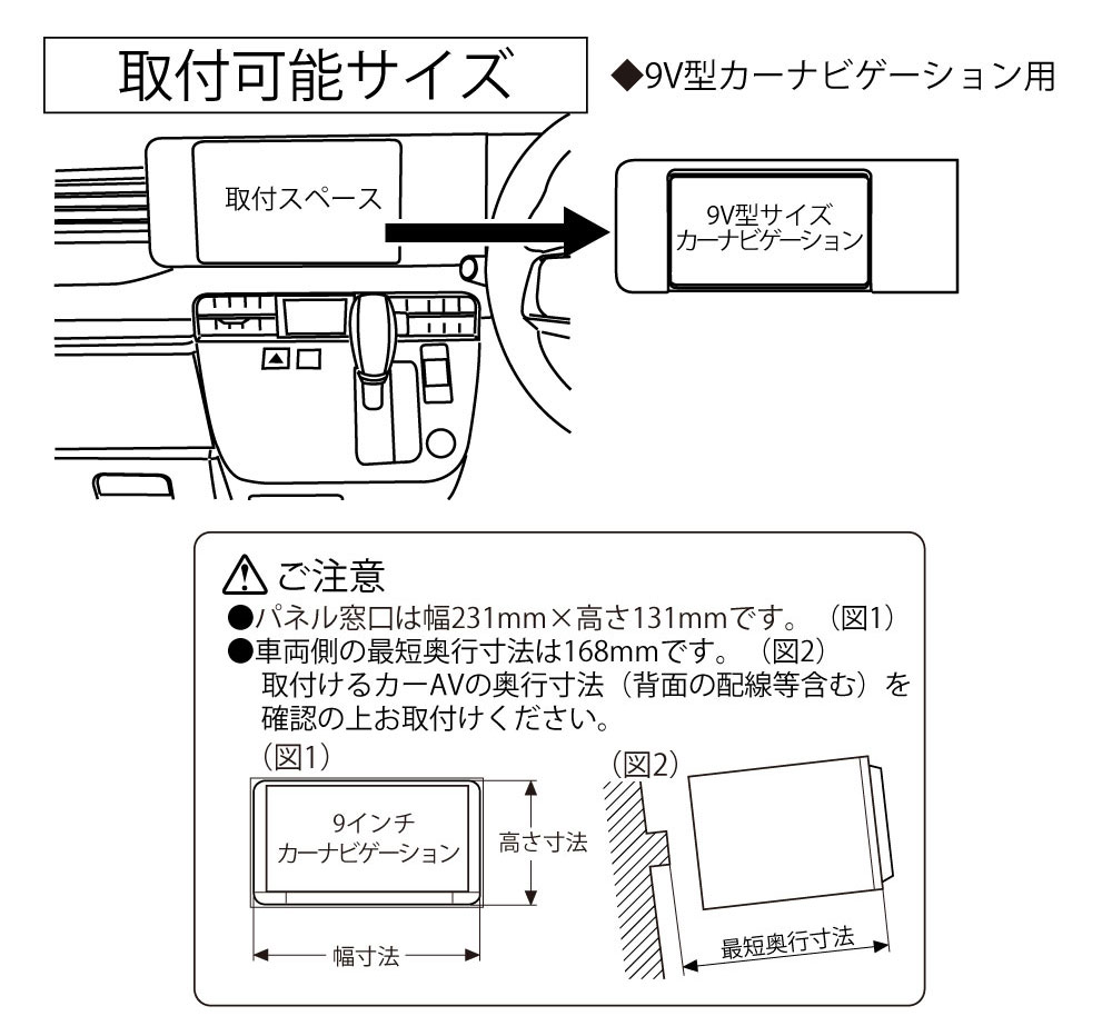 9インチ窓口付車(オーディオレス車)に、市販の9インチナビゲーションを取付けるキットです。